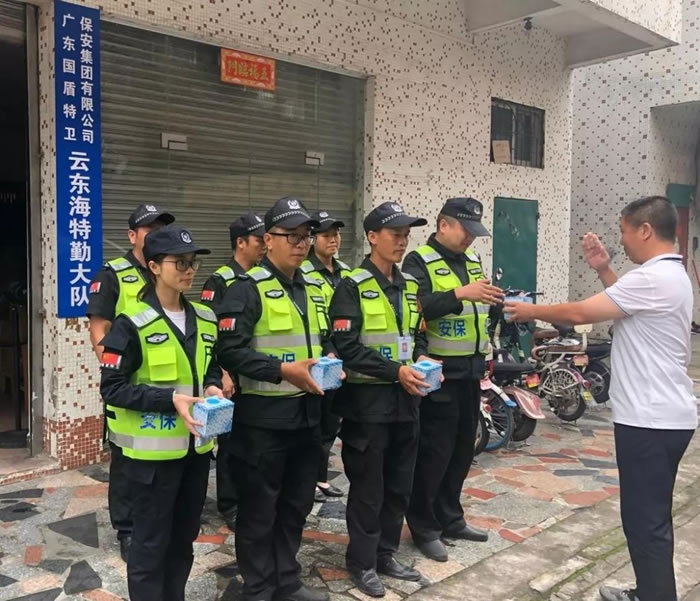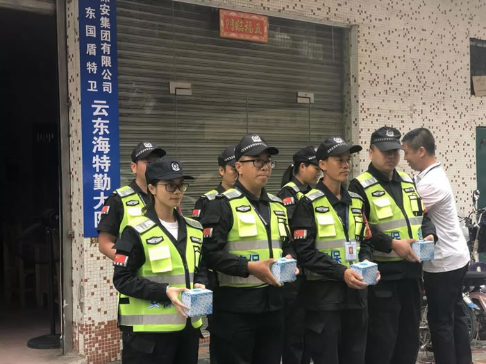 2019年4月17日,國盾特衛保安服務公司工會主席鄭紅戰與委員鄧淑芬受三水區云東海街道工會委托,前往云東海特勤大隊現場慰問優秀新隊員, 向一線隊員致以誠摯問候和祝福。