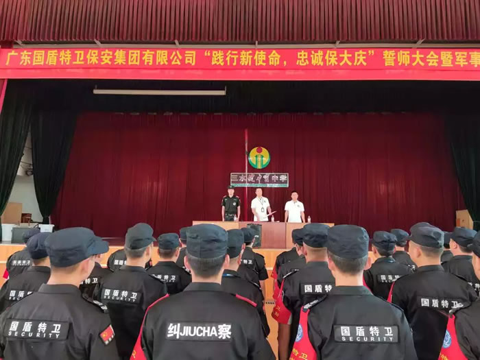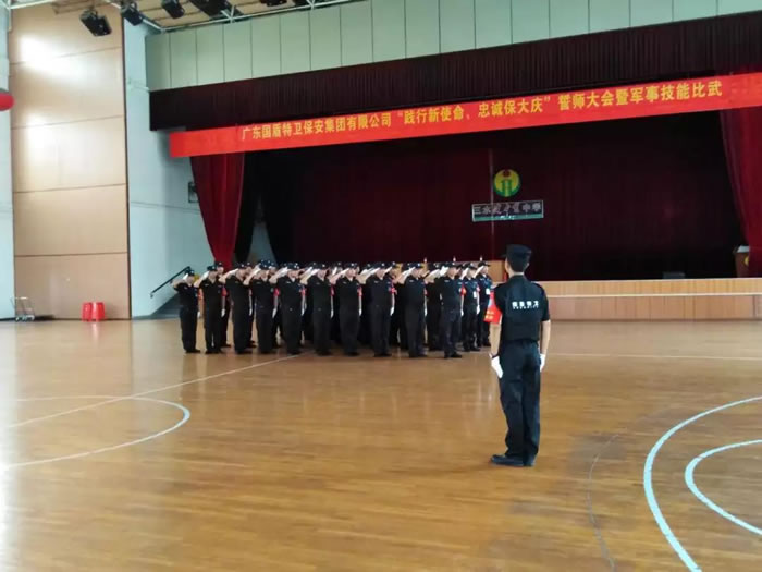 為慶祝中華人民共和國(guó)成立七十周年大慶的到來(lái),為人民群眾提供更安全的環(huán)境,提升我集團(tuán)全體隊(duì)員的綜合素質(zhì),打造一支訓(xùn)練有素、專(zhuān)業(yè)技能較高的安保隊(duì)伍。2019年6月2日下午,在健力寶中學(xué)體育館內(nèi),一場(chǎng)主題為“踐行新使命,忠誠(chéng)保大慶”誓師大會(huì)暨軍事技能比武活動(dòng)精彩上演。來(lái)自集團(tuán)五個(gè)保安部的數(shù)十名保安隊(duì)員參加了比賽,公司管理層出席觀摩活動(dòng)。