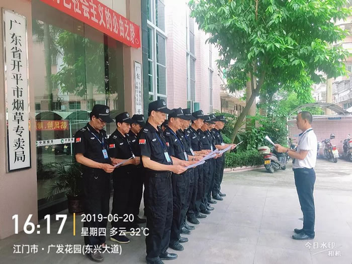 受客戶廣東煙草江門有限公司的邀請,國盾特衛(wèi)保安集團組織開展“安全生產(chǎn)月”專題培訓活動。切實發(fā)現(xiàn)并消除各類安全隱患,進一步加強安全生產(chǎn)工作,全面落實安全生產(chǎn)責任,全力維護客戶和員工的人身及財產(chǎn)安全,國盾特衛(wèi)保安集團結(jié)合自身實際,專門制定了相關(guān)工作方案,對組織機構(gòu)、人員配置及工作安排作出了具體部署,各項工作順利開展,成效顯著。