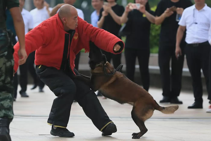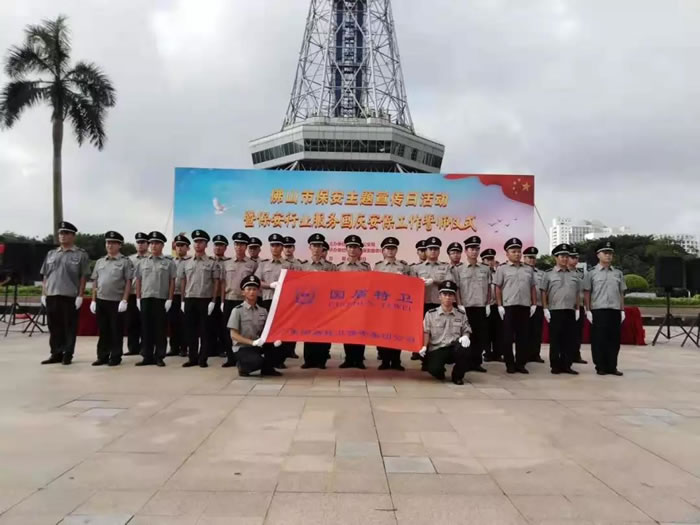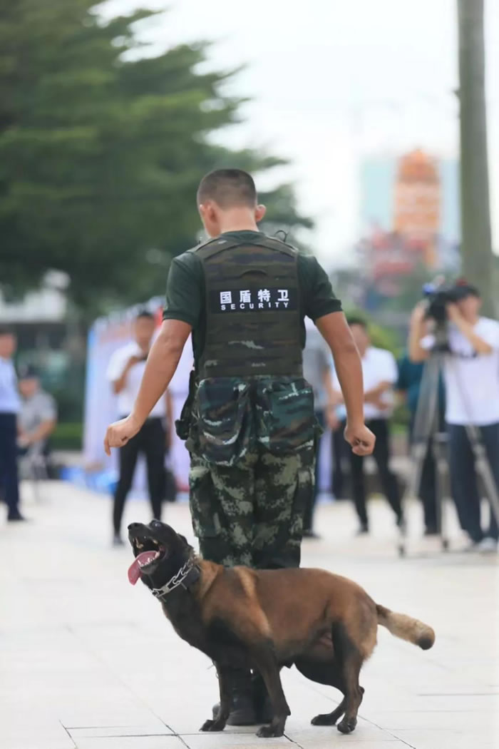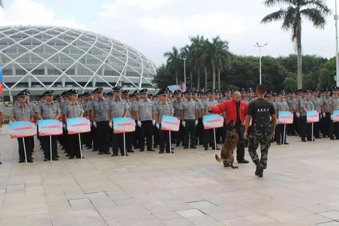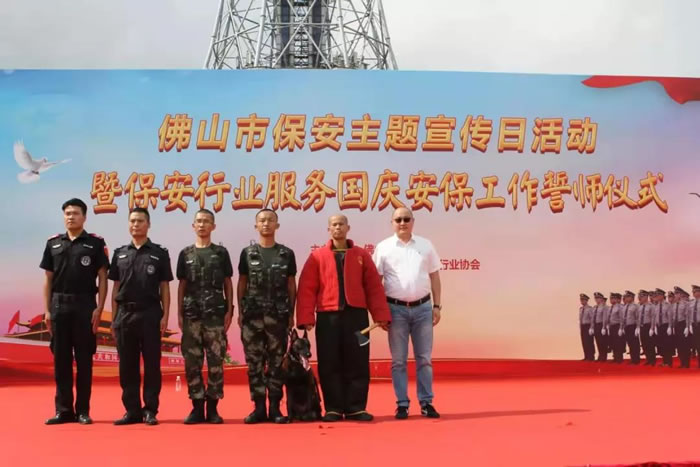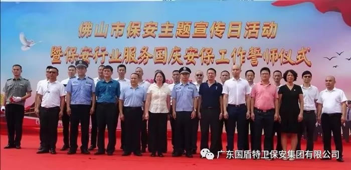為了迎接中華人民共和國(guó)70周年華誕,號(hào)召全市保安積極行動(dòng)起來(lái),7月24日上午,佛山市保安服務(wù)行業(yè)在禪城區(qū)嶺南明珠電視塔廣場(chǎng),與全國(guó)、全省同步,舉行了隆重的聲勢(shì)浩大的“佛山市保安主題宣傳日暨保安行業(yè)服務(wù)國(guó)慶安保誓師儀式”。廣東國(guó)盾特衛(wèi)保安集團(tuán)有限公司董事長(zhǎng)夏學(xué)樹(shù)率領(lǐng)其集團(tuán)公司方隊(duì)全程參加,在技防操演中,國(guó)盾特衛(wèi)保安集團(tuán)特種犬護(hù)衛(wèi)隊(duì)威武亮相,成為全場(chǎng)亮點(diǎn),受到各方好評(píng)。
