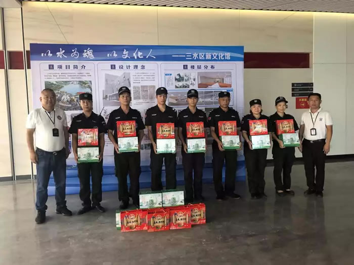 中秋佳節即將來臨之際,8月26日至9月2日,佛山國盾特衛保安服務公司派出管理人員分赴各執勤崗點看望慰問堅守在一線的保安隊員們,送去節日的祝福與慰問禮品,對他們恪盡職守的精神給予了肯定,鼓勵大家要有高度的政治意識和政治覺悟,再接再厲不松懈,確保中秋、國慶“兩節”期間保安隊伍和客戶單位的雙安全與雙穩定。