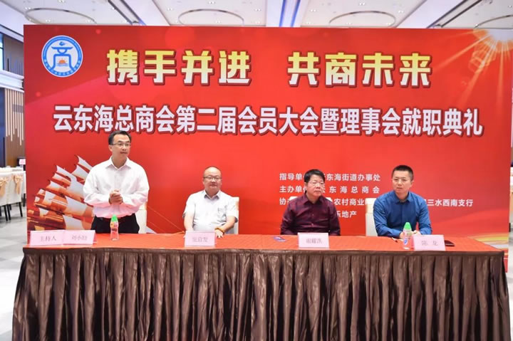 2019年11月18日,三水區云東海總商會第二屆會員大會暨理事會就職典禮在順峰山莊隆重舉行,云東海總商會近百名會員企業代表參加了會議,云東海街道黨工委書記林均恒、經促局局長陳龍等領導列席了此次就職典禮并見證各項議程。
