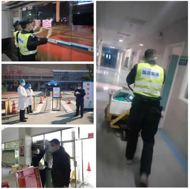 面對這場疫情,國盾特衛隊員雖然沒有在疫情現場的最前線,但是也一直在自身的崗位上默默守衛著。派駐到各大項目的安保人員配合客戶單位落實防控工作,對出入公共場所(特別是醫院重點區域)的群眾人員進行了體溫檢測和提示注意防范疫情,保證現場的良好秩序和區域安全。無論是深夜,還是清晨,都一直在堅守,靜靜的守衛著各自的崗位,護佑平安。