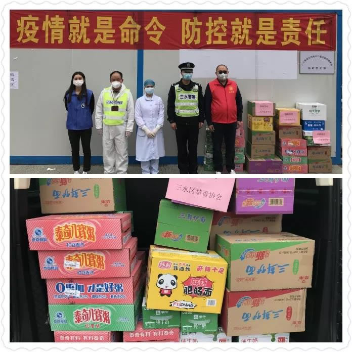 同日下午,廣東國盾特衛保安集團有限公司作為三水區禁毒協會會長單位,三水區禁毒協會會長、集團黨支部書記、董事長夏學樹通過三水區禁毒協會為一線民警、輔警、醫護人員送上牛奶、方便面、八寶粥各十箱等食物,并表示:“你們一定要注意好安全,大過年的還要站在寒風中排查疫情,很辛苦也很危險。我們別的也不能干什么,捐贈一些食物給你們,餓了就吃點。”