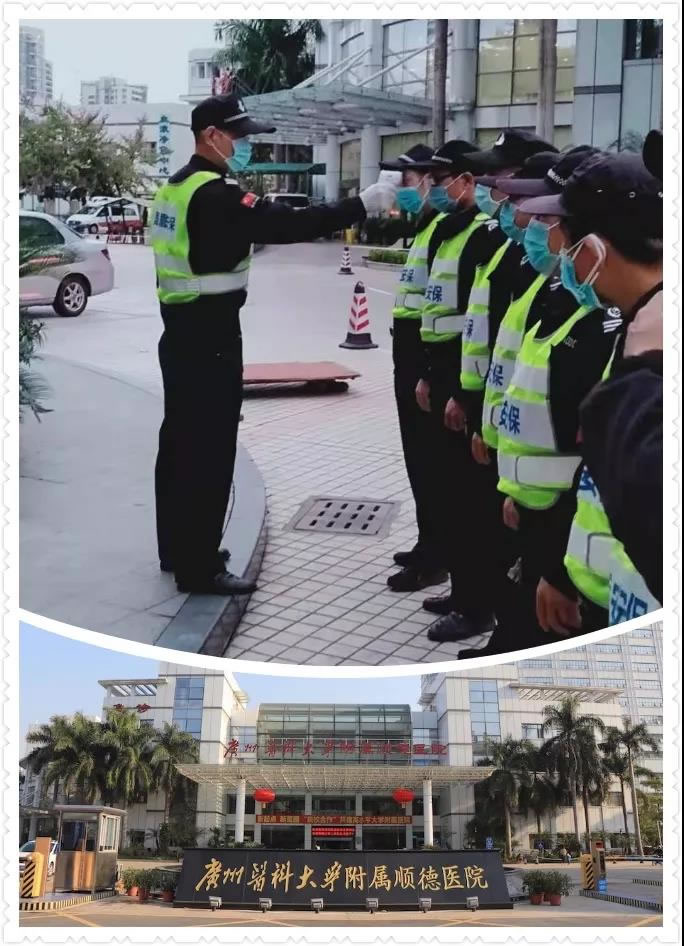 由于新冠狀病毒疫情的爆發(fā),又恰逢春節(jié)期間,我司派駐到廣州醫(yī)科大學(xué)附屬順德醫(yī)院的保安員克服困難、緊守崗位、履職盡責(zé),除了保證現(xiàn)場的良好秩序和區(qū)域安全,還支持院方完成醫(yī)療物資搬運、增設(shè)值守崗位、協(xié)助分診、警戒圍蔽等臨時性工作任務(wù),并加班加點地配合院方客戶單位落實各項疫情防控工作部署。