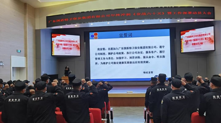 會(huì)議開始,全體人員起立,服務(wù)管理部部長(zhǎng)高永旗帶頭動(dòng)員宣誓,用錚錚誓言表達(dá)對(duì)集團(tuán)公司忠誠(chéng)履職盡責(zé)、奮力擔(dān)當(dāng)作為,全力以赴做好保障客戶單位安全的飽滿激情和堅(jiān)定決心。向各保安部安排年終各項(xiàng)工作部署任務(wù),要求各分隊(duì)著力提高突發(fā)事件處置、隊(duì)伍紀(jì)律監(jiān)督管理、危機(jī)風(fēng)險(xiǎn)把控等方面的能力意識(shí)。