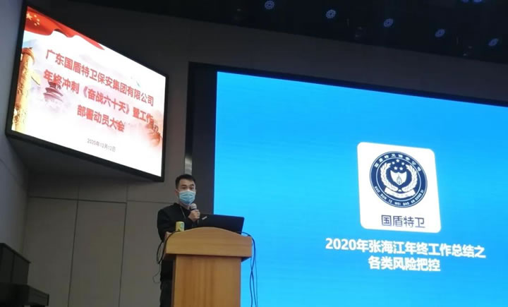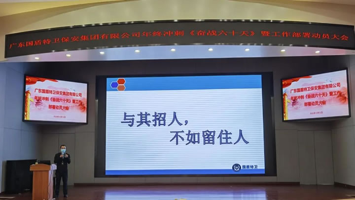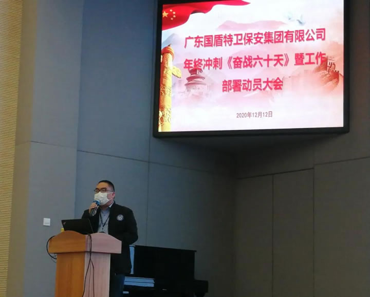 為了確保年末各項(xiàng)工作順利開展,規(guī)避各類安全風(fēng)險(xiǎn)事故,夯實(shí)基礎(chǔ)管理力量,抓住集團(tuán)公司發(fā)展的重要戰(zhàn)略機(jī)遇時(shí)期,把客戶安全貫穿到集團(tuán)公司工作各方面。堅(jiān)持系統(tǒng)思維,構(gòu)建大安全格局,全面塑造“國(guó)盾特衛(wèi)”品牌,鑄造一支“素質(zhì)過硬、服務(wù)一流”的精兵強(qiáng)隊(duì),進(jìn)一步提升客戶單位的服務(wù)水平和滿意度,促進(jìn)集團(tuán)公司品牌形象建設(shè)和可持續(xù)健康發(fā)展,為客戶單位提供堅(jiān)強(qiáng)的安全服務(wù)保障。 12月12日,集團(tuán)公司召開隊(duì)伍管理年終總結(jié)暨年終沖刺奮戰(zhàn)六十天動(dòng)員大會(huì),集團(tuán)公司副總經(jīng)理兼發(fā)展管理部部長(zhǎng)王延周、服務(wù)管理部部長(zhǎng)高永旗、行政人事部副部長(zhǎng)白雪瑩、各保安部經(jīng)理、大隊(duì)長(zhǎng)、分隊(duì)長(zhǎng)列席會(huì)議。