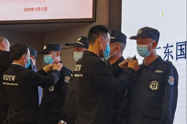為了規(guī)范各級(jí)基層保安管理人員的內(nèi)部結(jié)構(gòu),使保安隊(duì)伍有等級(jí)區(qū)分,激發(fā)保安基層管理人員的工作熱情,有利于保安服務(wù)工作更好的開展,讓有能之人有發(fā)展空間。集團(tuán)公司領(lǐng)導(dǎo)班子分別對(duì)大隊(duì)長(zhǎng)、中隊(duì)長(zhǎng)、分隊(duì)長(zhǎng)進(jìn)行授銜儀式,為授級(jí)人員更換肩章、胸章,氣氛莊嚴(yán)而熱烈。