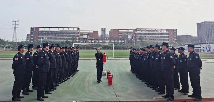 會(huì)議結(jié)束后,全體各級(jí)基層管理人員在操場(chǎng)上著裝整齊列隊(duì)完畢。首先,教官組織隊(duì)員進(jìn)行軍事基本動(dòng)作訓(xùn)練,隊(duì)員都能做到整齊劃一;其次以消防安全“一懂三會(huì)”和“四個(gè)能力”為框架,對(duì)現(xiàn)場(chǎng)保安管理人員日?;馂?zāi)防范、火災(zāi)處置對(duì)策、疏散人員逃生自救、消防設(shè)施設(shè)備的維護(hù)保養(yǎng)等消防安全知識(shí)進(jìn)行講解,還現(xiàn)場(chǎng)演示了正確使用滅火器滅火和拋撒水帶連接等技能,并組織人員現(xiàn)場(chǎng)進(jìn)行操作,取得了良好的預(yù)期效果。