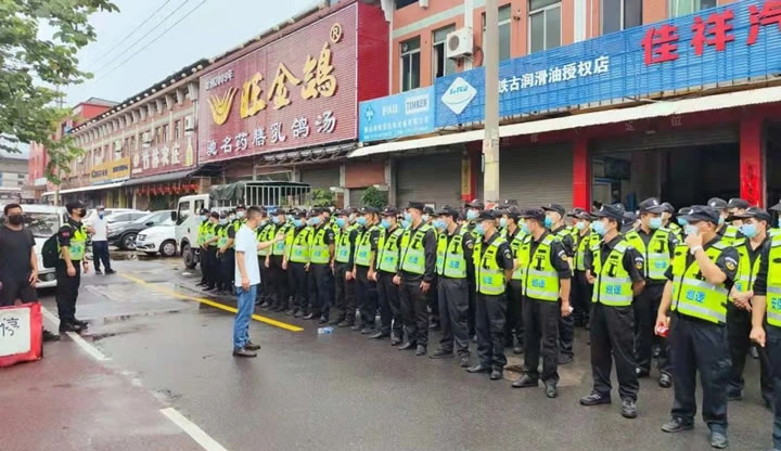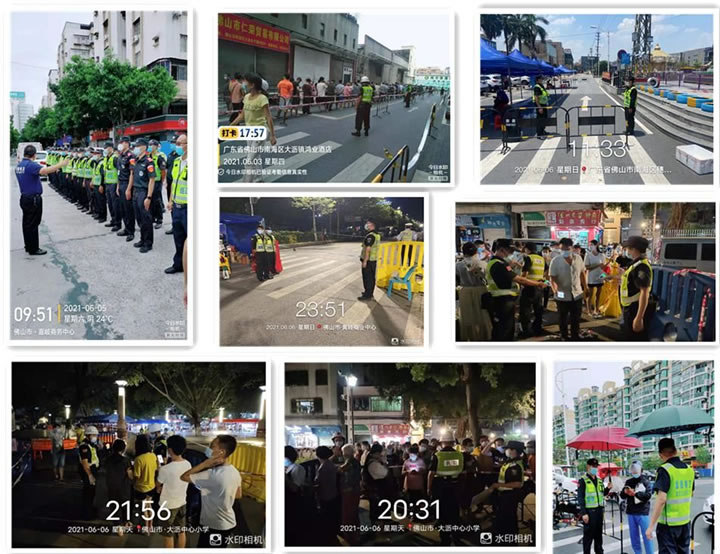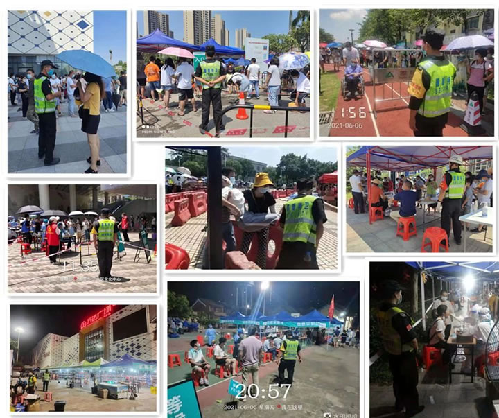 為了防止疫情大范圍擴散,在烈日下、在夜幕下,在核酸檢驗區、在隔離看護點,處處都能看見國盾特衛保安員默默忙碌的的身影,不分晝夜看護隔離居民禁止出行,引導居民做核酸檢測并維持秩序,為疫情貢獻力量。派駐到各點的保安員全力以赴配合上級政府部門,從場地布置、模擬演習到交通疏導、秩序維護,順利圓滿完成了對南海大瀝鎮、三水各鎮街全員核酸檢測工作,獲得了相關政府部門領導的高度認可。