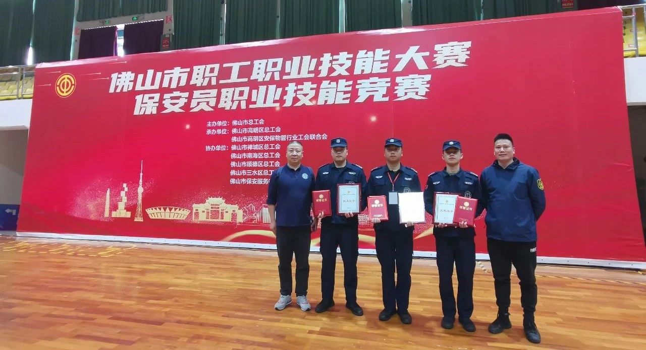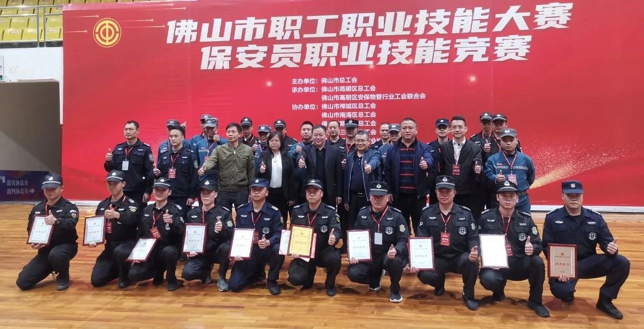 2023年2月16日,佛山市職工職業(yè)技能大賽—保安員職業(yè)技能競賽在廣東華體高明體育館舉行。該競賽由佛山市總工會主辦,共有來自佛山五區(qū)的32名保安員選手參賽,本次競賽只設(shè)個人獎。我司代表參賽保安員楊海潮、李其昆、李志勇獲得了較好的成績,被佛山市總工會授予“佛山市職工(保安員)職業(yè)技能競賽技術(shù)能手”稱號,并頒發(fā)榮譽(yù)證書及獎金。