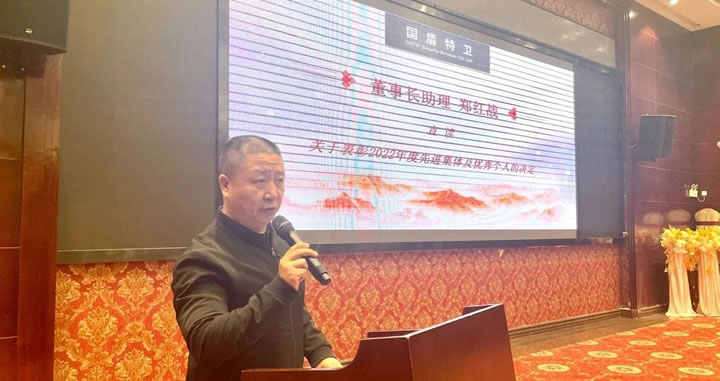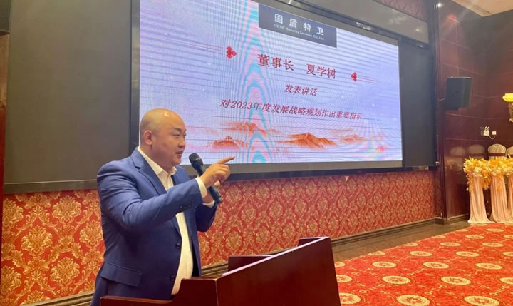 大會在莊嚴的國歌聲中拉開序幕,會上集團公司副總經理王延周同志作《國盾特衛保安集團2022年度工作總結》,圍繞重點項目和任務、工作亮點等方面總結成績及經驗,正視差距、補齊短板,并對2023年重點工作的規劃部署進行了匯報。他表示,2023年,要帶領各部門以堅如磐石的信心、堅韌不拔的毅力奮力推進國盾特衛安保事業更上一層樓。