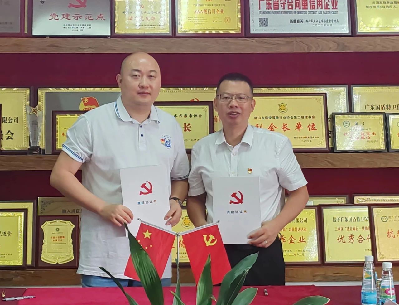 為深入貫徹落實習近平新時代中國特色社會主義思想,深刻學習黨的二十大會議精神,加強黨組織之間的溝通交流,進一步發揮基層黨組織戰斗堡壘作用,推動黨建與經營發展、黨建與業務工作的深度融合。9月13日上午,廣東國盾特衛保安集團有限公司與佛山市佛鐵實業有限公司開展黨支部結對共建活動,并舉行共建合作簽約儀式。