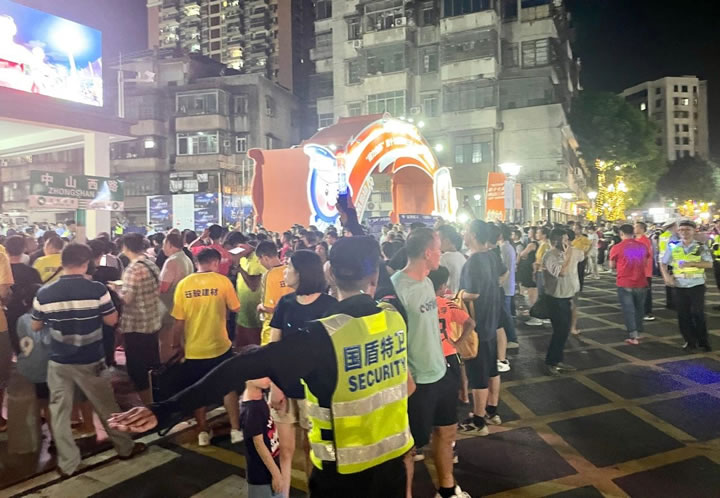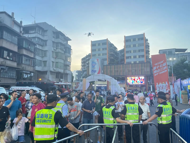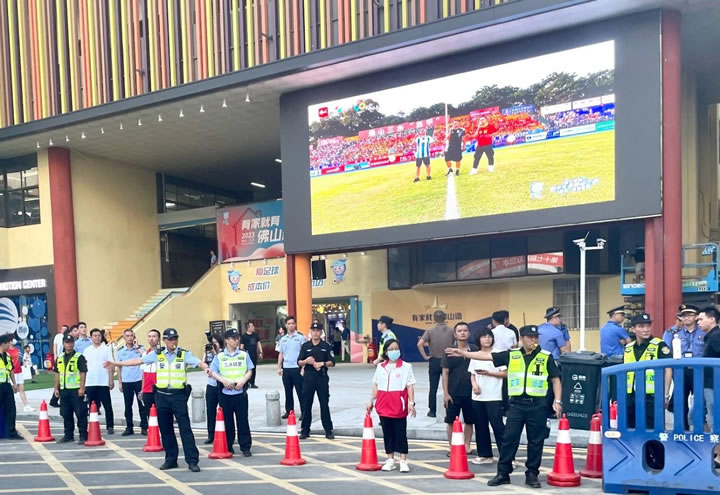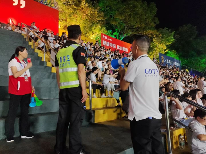 每晚開賽前,我司安保人員協(xié)助三水公安交警對活動現(xiàn)場周邊道路實施臨時交通管制,擺設交通管制牌、水馬和鐵馬,協(xié)助交警引導觀賽群眾到指定停車場停放車輛,確保賽事交通安全和群眾出行順暢。