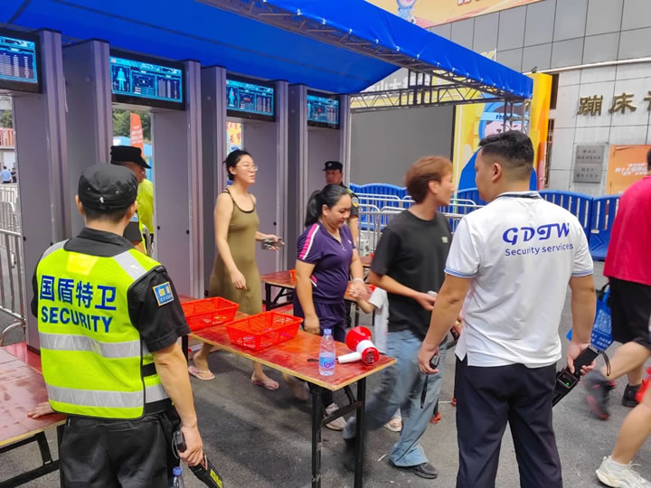 每晚開賽前,我司安保人員協(xié)助公安民警在安檢口、入場口開展安全檢查和服務保障。引導運動員、嘉賓、新聞媒體記者及觀眾安全有序進入賽場;賽場內(nèi),協(xié)助公安民警細致開展排爆安全檢查、消防安全檢查,及時發(fā)現(xiàn)和排除安全風險隱患。